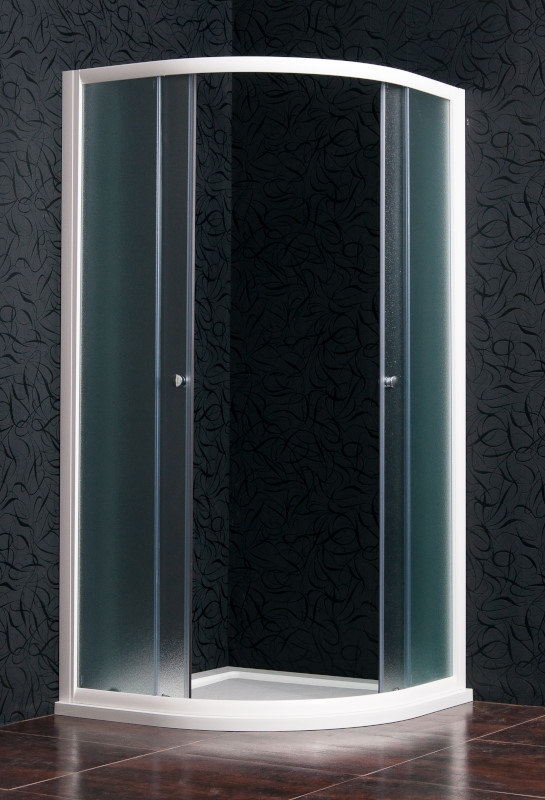 Termék jellemzők: 4mm biztonsági üveg  grape mintázat aluminium / fehér szín rádiusz: R550 görgős toloajtó állítható fali profillal opcionálisan rendelhető erősített akril zuhanytálcával Rendelhető méretek: 80x80x185cm 90x90x185 cm