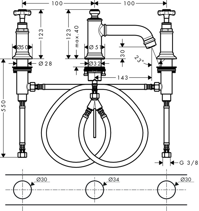 Axor Montreux 3-lyukú mosdócsaptelep 30, automata lefolyó-garniturával 16536 000 (16536000)Axor