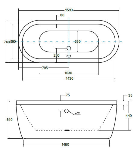 AQUALINE TAJO szabadonálló kád, 170x80cm, akril E1980