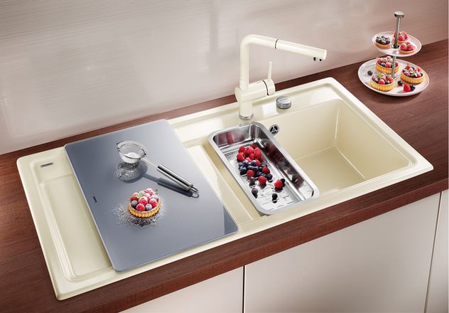 BLANCO ZENAR XL 6S kerámia PuraPlus kerámia mosogató kerámia PuraPlus Kortalan jelenség modern funkciókkal Különösen nagy medence Körbefutó lapos perem Letisztult, egyenes vonalú design Kiváló minőségű, könnyen tisztítható kerámia Választható tartozékok: üveg vágólap, rozsdamentes tál és SensorControl-BSC Medencemélység: 185 mm Alaptartozékok: lefolyó-garnitúra helytakarékos csővel, 3 ½"-os szűrőkosaras lefolyó, excenteres távműködtető, csaphelyfurat Anyaga: kerámia Alsószekrény mérete: 60 Elrendezés: 1 medence + csepptálca Beépítés: hagyományos (munkalap kivágásba felülről) Felületvédelem: PuraPlus Kerámia A BLANCO kerámia mosogatói a finomkő anyagból készülnek, mely rendkívüli anyagsűrűségével a laboratóriumokban támasztott magas követelményeknek is megfelel. A kerámiamosogatók kellemes tapintásúak, lágy formájuk pasztell színeik látványnak is szépek. A kerámia mosogatók tulajdonságai: -rendkívül ütés és ütközésálló -hőálló 1000 C fokig -folt és saválló -fényálló -karcálló -ápolása egyszerű