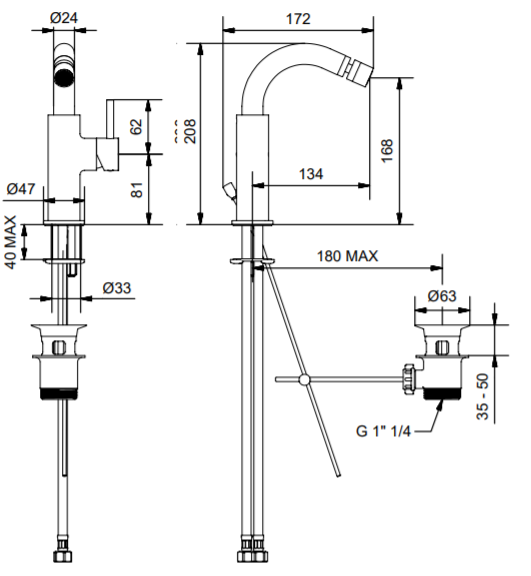 Bugnatese KOBUK MINI Bidet csaptelep leeresztővel, matt fekete 2225OPBugnatese