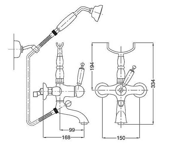 Bugnatese Old800 002CR Kádcsaptelep zuhanyszettel CR/KRÓM