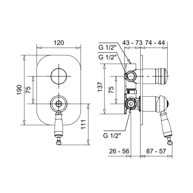 Bugnatese Oxford 6331NS Fal alatti 3 állású zuhanyváltó komplett NS / NIKKELBugnatese