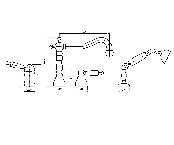 Sapho ANTEA króm kádperemre szerelhető csaptelep, öt részes (3311)