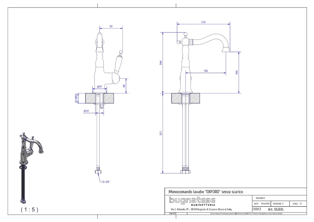Bugnatese Oxford mosdócsaptelep leeresztő nélkül, rame 6313SRABugnatese