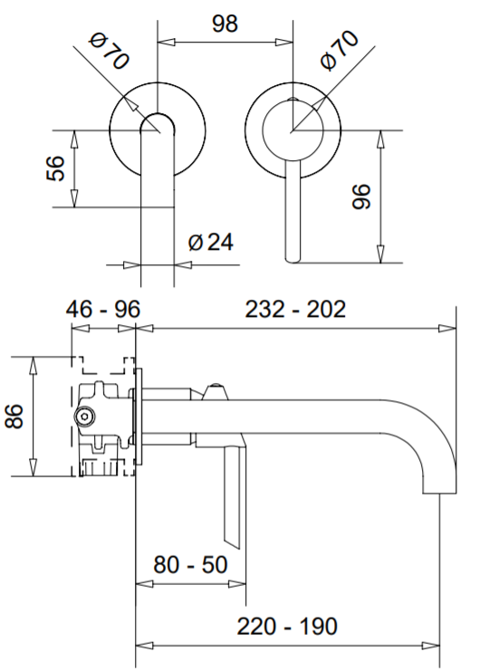 Bugnatese SMART Fal alatti mosdócsaptelep 22 cm kifolyóval klikk-klakk leeresztővel, matt fekete 2165SCOP