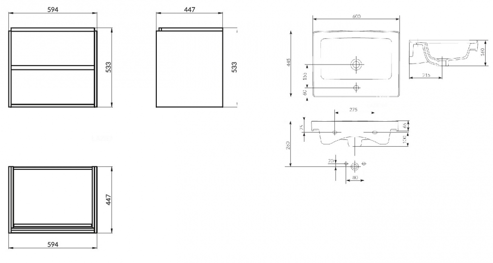 Jika Cube 65 alsószekrény mosdóval, kőris H4536021765141