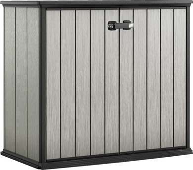 A TOOL STORE tárolót egyszerű és elegáns mintázat, univerzális színek és természetes fára emlékeztető felületkialakítás jellemez. A tároló minden olyan helyen beválik, ahol nélkülözhetetlen a kerti tartozékok és háztartási tárgyak tárolása. Az optimális méreteinek és a vízszintes szerkezetnek köszönhetően a tároló szinte mindenhova lehelyezhető. A szolid szerkezet megvédi a tárolóban tárolt tárgyakat a nedvességtől, a magas minőségű nyersanyagok hosszú élettartamot garantálnak.