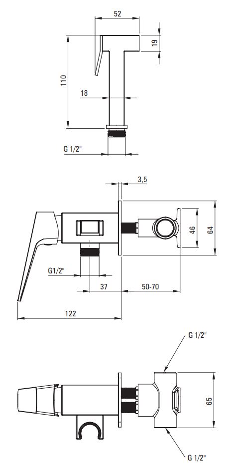 Sapho bidé zuhany WC tartályhoz osztott sarokszeleppel, króm 1209-04
