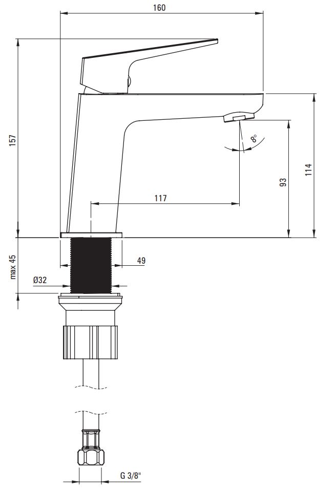 Csaptelep test magassága (zárt állapotnál): 15,7 cm