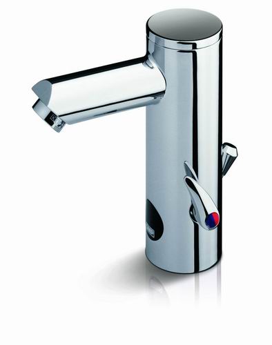 Vandálbiztos kialakítású, minimalista elektromos csaptelep 3x1,5 V alkáli elem Egyvizes, keverős és mosdó alatti keverős változatai hálózati vagy elemes táplálással készülnek, fehér vagy króm színben Az elemek vízálló házban kerülnek elhelyezésre, élettartamuk pedig napi 200 használat mellett is 4 év Az elem közelgő lemerülését 6 mp-ként villogó, figyelmeztető lámpa jelzi Elárasztás elleni védelem az esetleges 90 mp folyamatos működés után Érzékelési távolsága 8 és 35 cm közötti IP 65 érintésvédelemmel rendelkezik Beépített vízmennyiség-szabályzó 6 l/perc Bemeneti vízcsatlakozása 1/2˝ Üzemi víznyomása 0,4-10 bar A csomag tartalmazza a bekötéshez és felszereléshez szükséges flexibilis csöveket, alkatrészeket, a magyar nyelvű technikai dokumentációt, a garanciajegyeket és modelltől függően a biztonságos transzformátort vagy az elemeket Származási hely: Olaszország