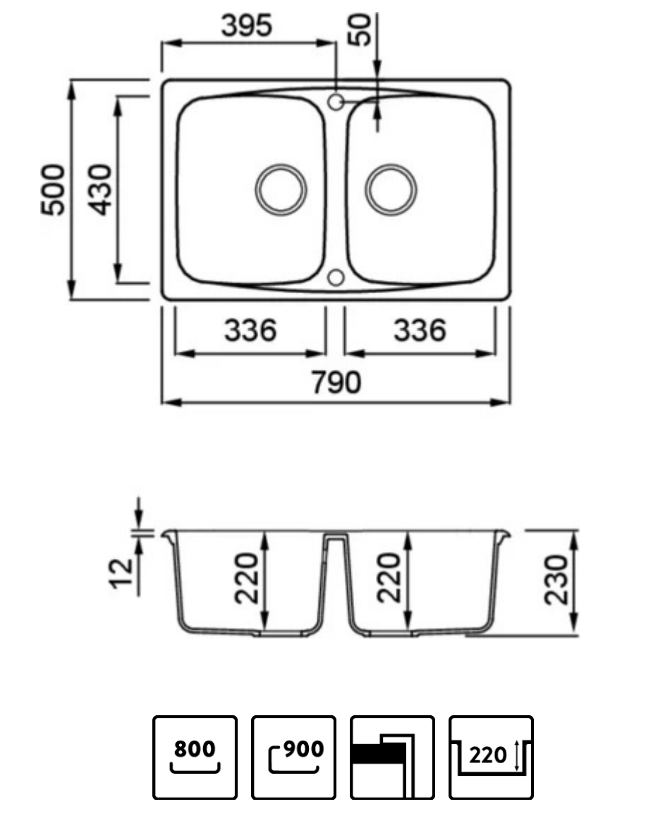 Elleci Master 350 két medencés gránit mosogató, G40 Nero LGM35040Elleci Master 350 két medencés gránit mosogató, G40 Nero LGM35040