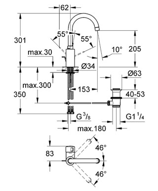 Grohe Eurosmart Cosmopolitan magasított mosdócsaptelep 32830 000 (32830000) egykaros mosdócsaptelep GROHE SilkMove® 35 mm-es kerámiabetéttel GROHE StarLight® króm felülettel beépített mennyiséghatárolóval elfordítható csőkifolyó határoló ütközővel gyöngyöztetővel flexibilis csatlakozótömlőkkel húzórudas leeresztőgarnitúrával GROHE QuickFix® gyorsszerelő rendszer opció: beépíthető hőfokhatároló 46 375