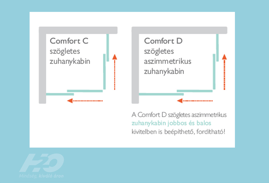 CSOMAGAKCIÓ - H2O Comfort C 90x90 cm szögletes zuhanykabin Nero C előlapos zuhanytálcával, króm 10904