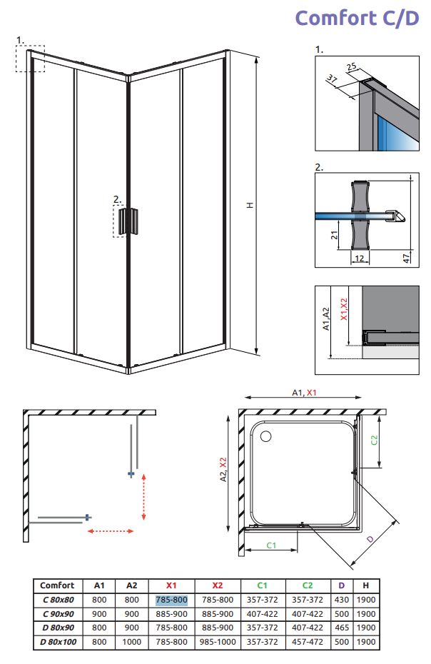 CSOMAGAKCIÓ - H2O Comfort C 90x90 cm szögletes zuhanykabin Nero C Slim zuhanytálcával, króm 10905