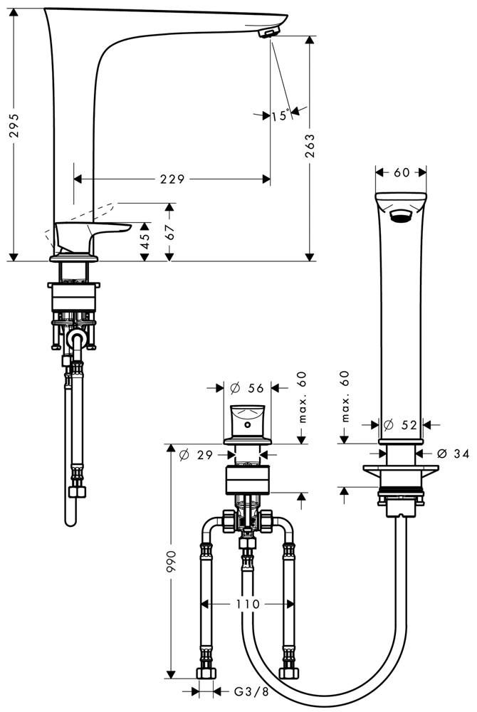 Hansgrohe PuraVida 2-lyukú egykaros króm konyhai csaptelep 15812 000 (15812000) 120°-ban elforgatható kifolyó szabadon elhelyezhető kezelőegység gyorsbekötőcső 2 x 700 mm hosszabbítócső a hideg- és melegvíz csatlakozáshoz 1 x 300 mm hosszabbítócső a kevertvíz csatlakozáshoz kerámiabetét 3/8”-os csatlakozások átfolyós vízmelegítőkhöz alkalmas a fogantyú elhelyezhető bal- és jobboldalra is