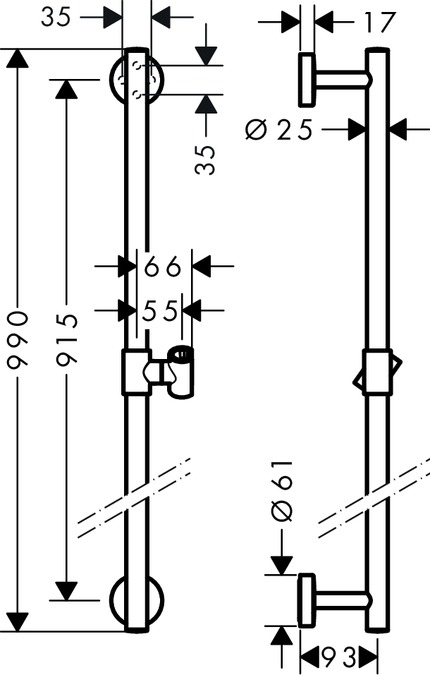Hansgrohe Unica E Puro 90 cm fali zuhanyrúd könnyen csúsztatható kézizuhanytartóval, króm 24403000