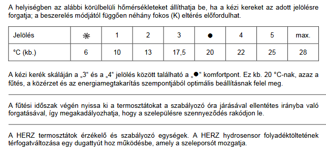 fűtőtestekre, beállítható fagyvédelemmel, behatárolható és rögzíthető előírtérték-