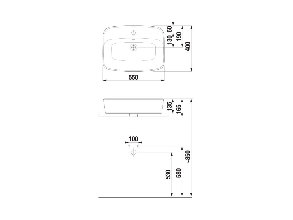 Sapho OFELIE pultra ültethető mosdó, 51,5x39 cm AR433