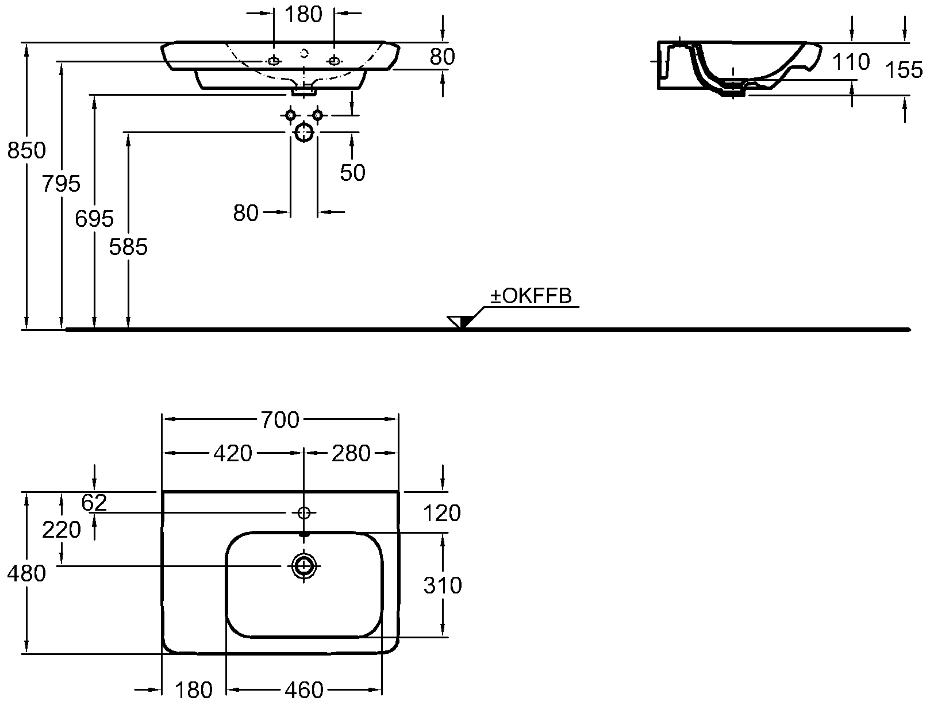 Keramag It! 70x48 cm mosdó, bal oldali rakodóval Keratect felülettel (122970600) | SzaniterPlaza.hu - Szaniter webáruház, fürdőszoba felszerelés, csaptelepek, mosdók, zuhanyok, akciós árak.
