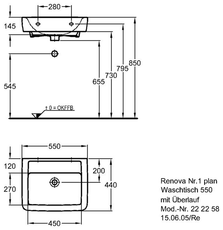 Keramag Renova Nr. 1 Plan mosdó csaplyuk nélkül keratect felülettel (55x44 cm, 222258600)Keramag