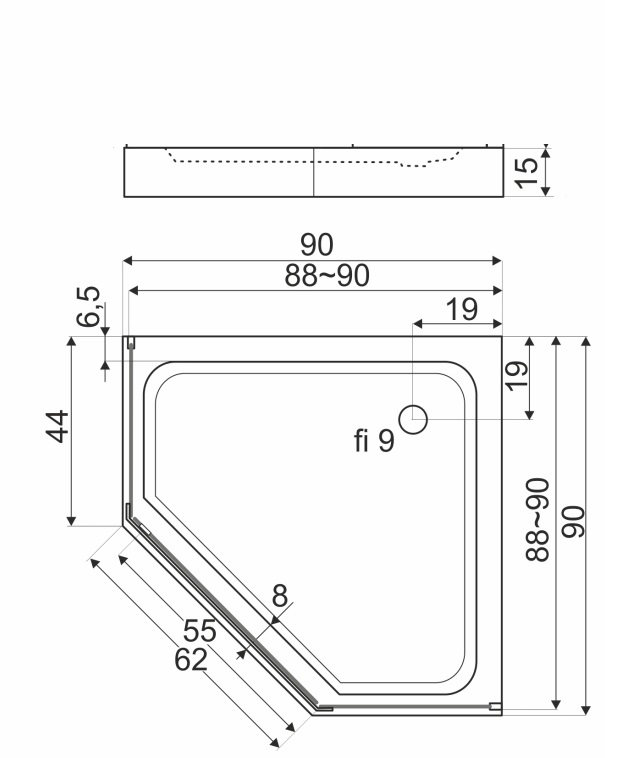 Akril zuhanytálca Glasgow típusú kabinunkhoz Méret: 90 x 90 x 15 cm Anyag: akrilAzonosító: 161538
