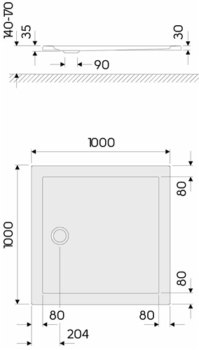 Marmy Dolomite öntött márvány zuhanytálca 90x90 cm, matt szürke 80 7642 90 90 53