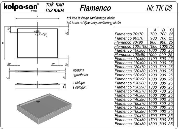 Kolpa-San Flamenco 70x70 zuhanytálca 571110Kolpa-San