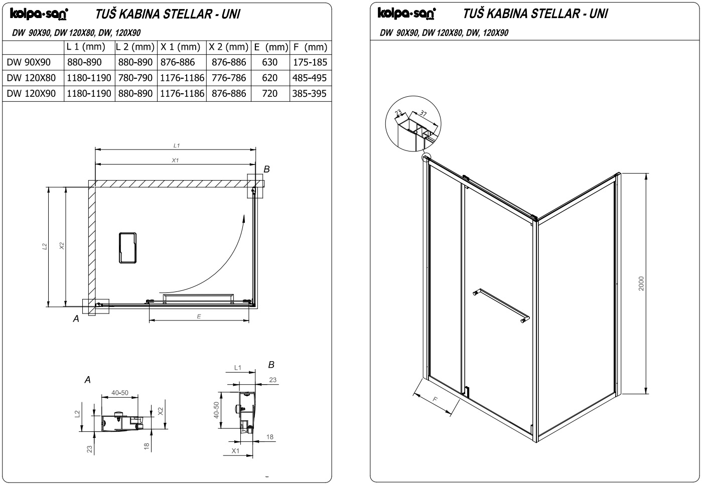 Kolpa-San Stellar UNI 90x90 cm zuhanykabin, matt fekete 518810Kolpa-San