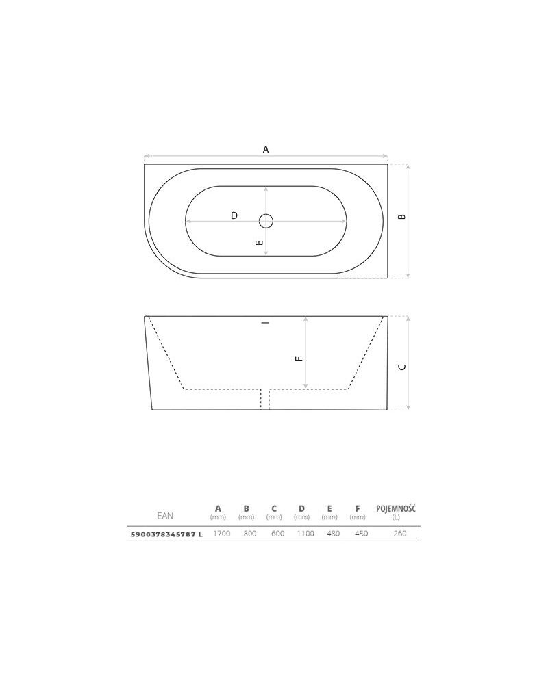 AQUALINE TAJO szabadonálló kád, 170x80cm, akril E1980