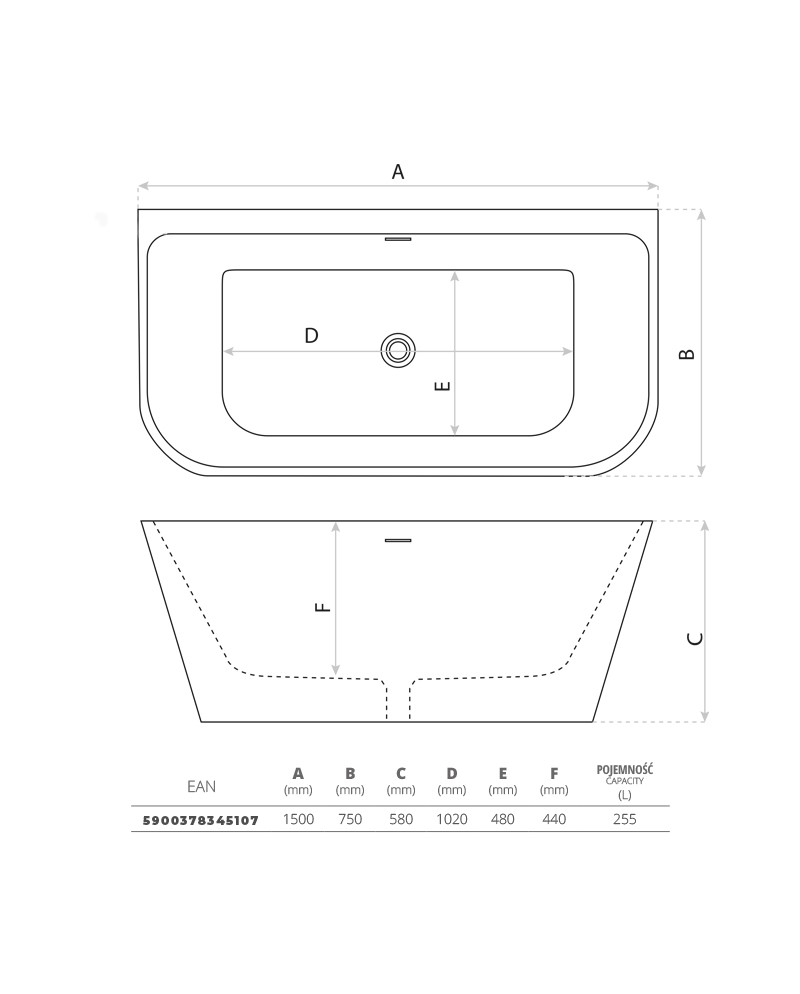 Lavita Elias szabadonálló kád falhoz 150x75 cm, fehér 5900378345107Lavita Elias szabadonálló kád falhoz 150x75 cm, fehér 5900378345107Lavita Elias szabadonálló kád falhoz 150x75 cm, fehér 5900378345107
