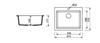 Mérete: 615x510x215 medence mérete: 530x390x220 Min. beépítési méret: 60 cm A képek és anyagszínek illusztrációk, a valós színektől eltérhetnek.