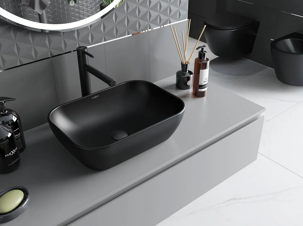Mexen Rita pultra ültethető mosdó 45x32 cm matt fekete 21084585 | SzaniterPlaza.hu - Szaniter webáruház, fürdőszoba felszerelés, csaptelepek, mosdók, zuhanyok, akciós árak.