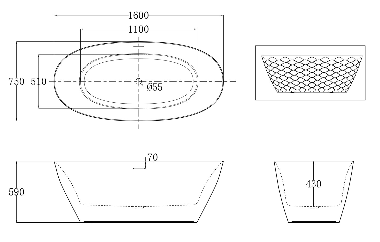 Wellis Oval 160x78 cm szabadonálló kád WK00142