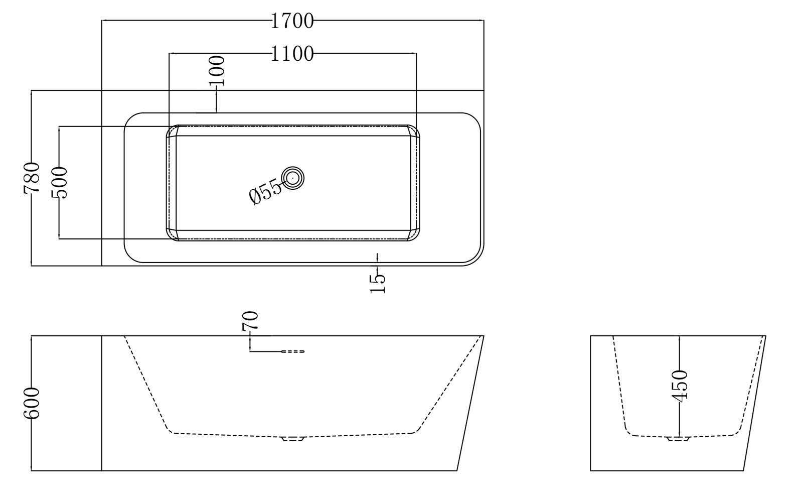 AQUALINE TAJO szabadonálló kád, 170x80cm, akril E1980