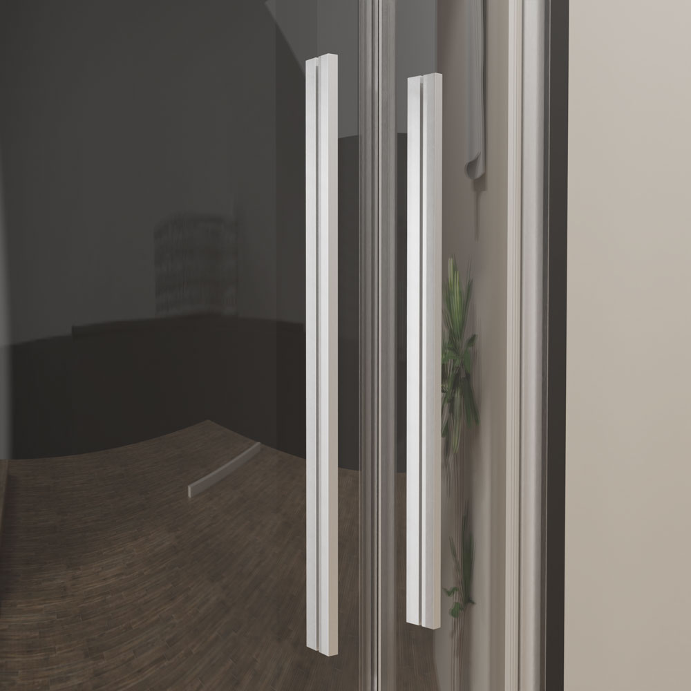A hosszú, rozsdamentes acél fogantyúk kényelmes fogást biztosítanak, miközben eleganciát sugároznak. A szerelés rendkívül egyszerű, hiszen a kabin részben előre szerelt, a falhoz rögzítésnél pedig 1,5 cm-es állítható profilok segítik a tökéletes illeszkedést. A rejtett csavarok hozzájárulnak a letisztult és esztétikus megjelenéshez.