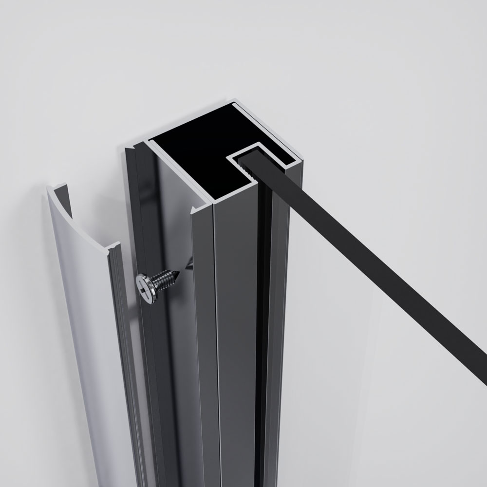A hosszú, rozsdamentes acél fogantyúk kényelmes fogást biztosítanak, miközben eleganciát sugároznak. A szerelés rendkívül egyszerű, hiszen a kabin részben előre szerelt, a falhoz rögzítésnél pedig 1,5 cm-es állítható profilok segítik a tökéletes illeszkedést. A rejtett csavarok hozzájárulnak a letisztult és esztétikus megjelenéshez.