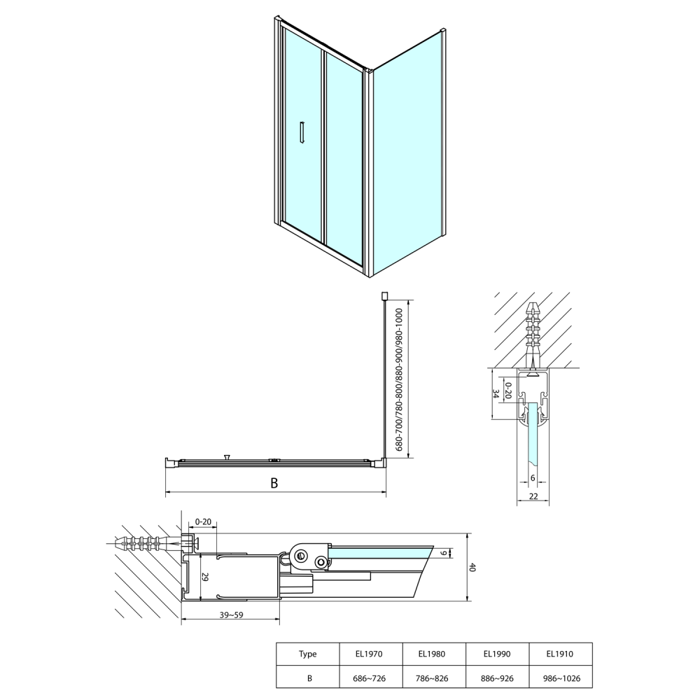 Az oldalfal beépítési mérete: 990 ± 10 mm