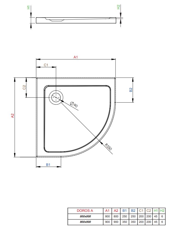 Radaway Doros Stone A 80x80 cm íves zuhanytálca, fehér SDRA8080-01-04S