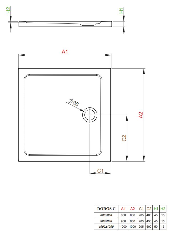 Radaway Doros C 90x90 cm szögletes zuhanytálca, fehér SDRC9090-01
