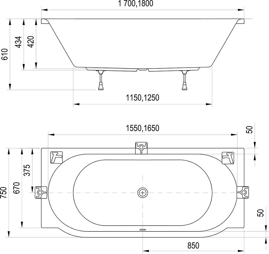 Ravak ARC 170x75 cm egyenes kád, fehér CE41000000