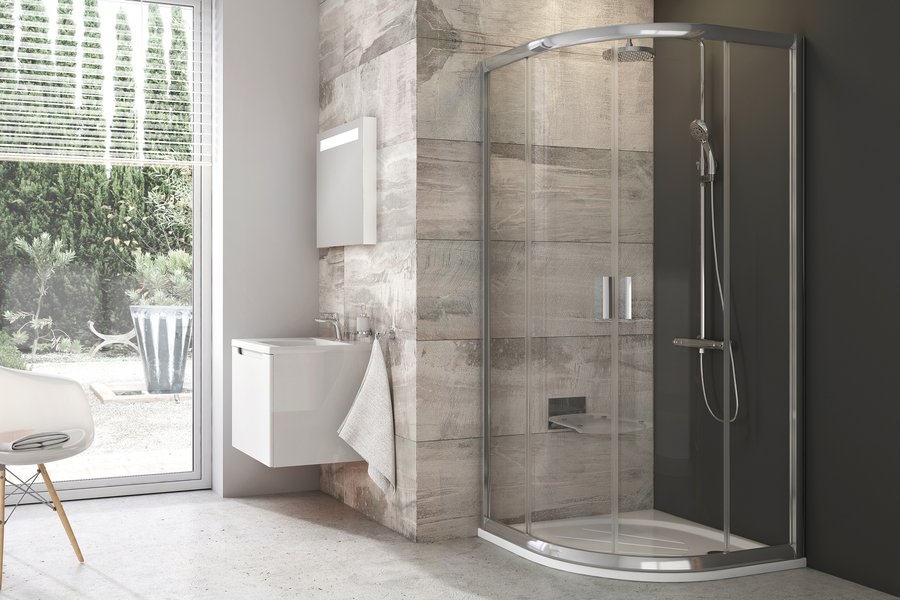 Roltechnik MUNDIS 90x90 cm íves zuhanykabin Tweed üveggel, króm N0805