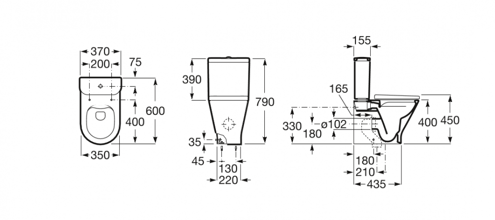 Roca The Gap Round monoblokk wc-hez tartály, oldalsó bekötésű A3410N1000