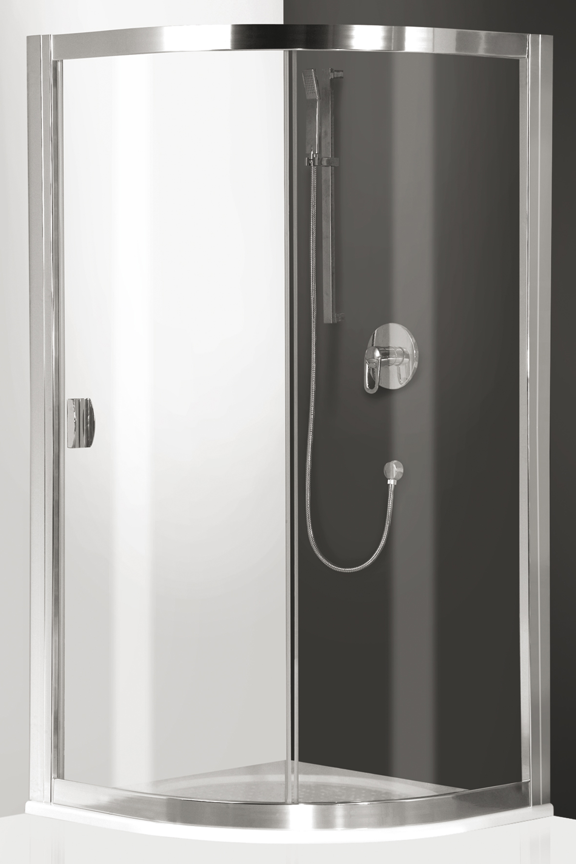 Roltechnik Exclusive Line ECR1 90x90 cm-es negyedköríves zuhanykabin Íves zuhanykabin 6 mm biztonsági üveg Felül duplagörgős,egy oldalra toló ajtó tolóajtó Beépítési méret: 87-90,5 cm Belépési méret: 56 cm Magasság: 185 cm NANOGLASS II üvegfelület kezelés