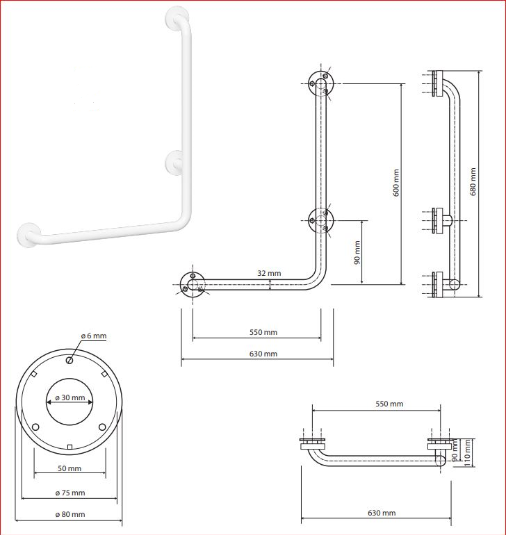 Sapho BEMETA HELP Kapaszkodó, U-típus, takaróval, 900mm, fehér 301707333