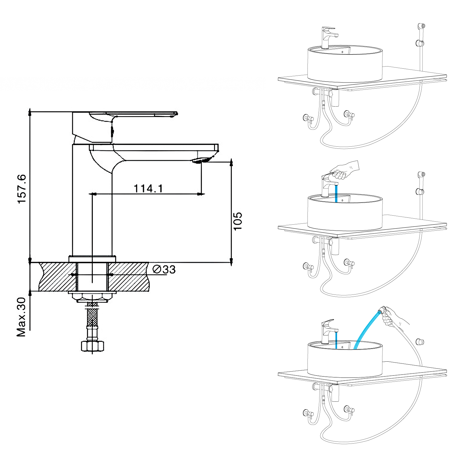 Csaptelep test magassága (zárt állapotnál): 15,8 cm