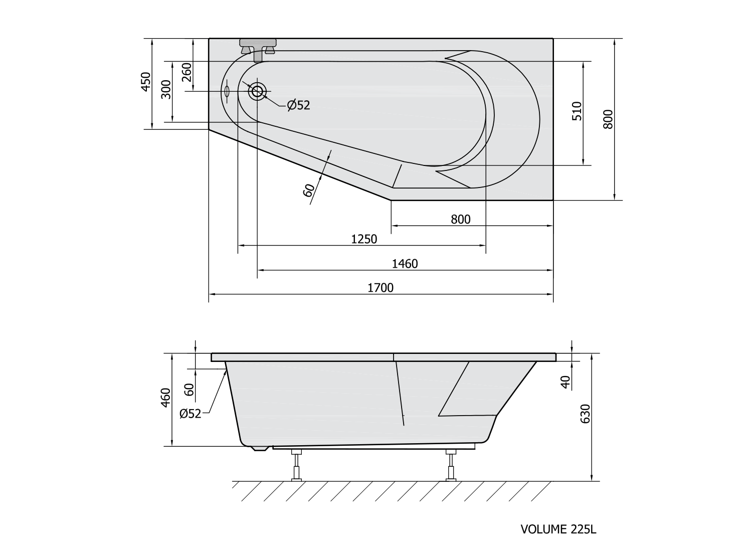 Polysan Naos 170x100 cm aszimmetrikus kád, jobbos 99111
