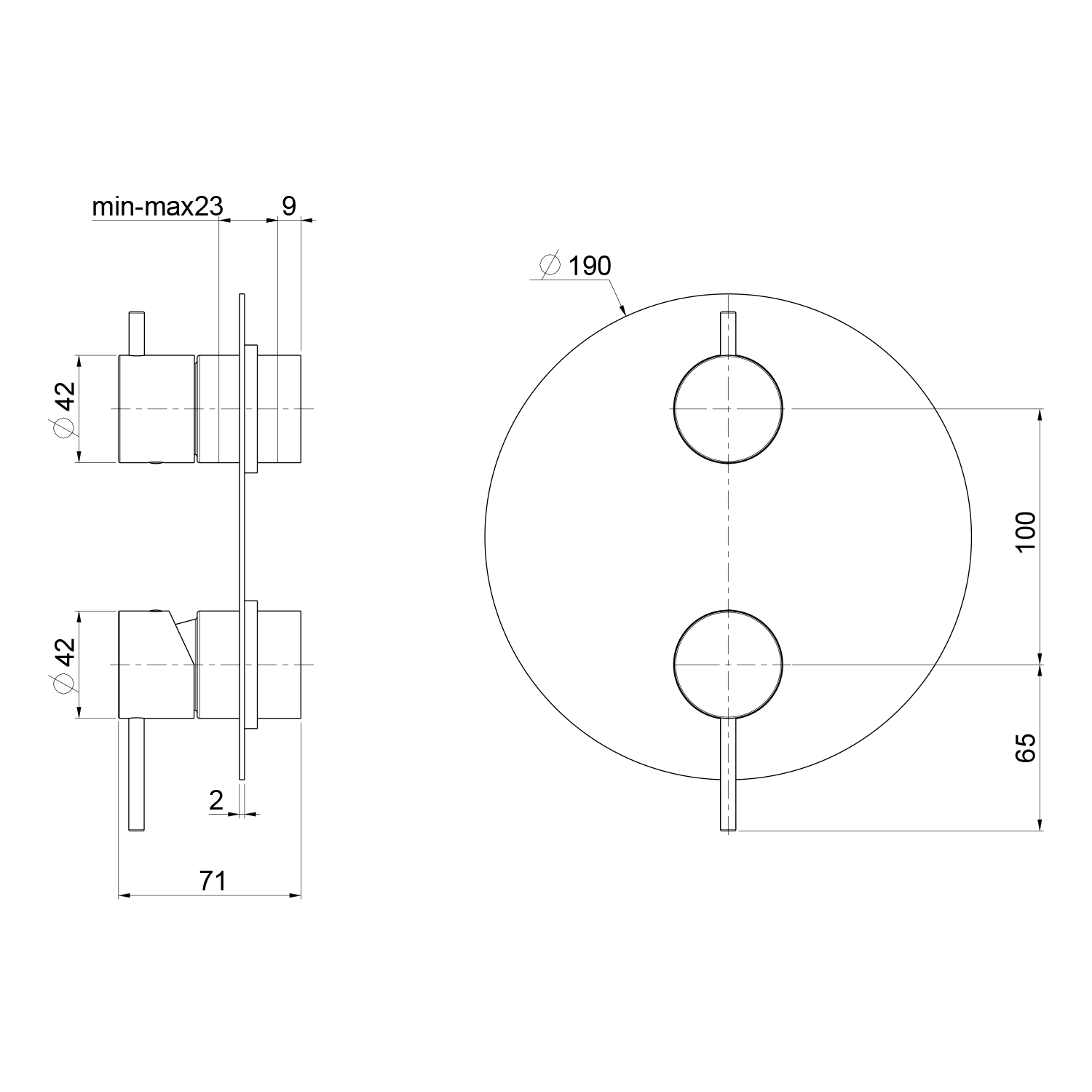 Sapho ULTRAMIX 3-irányú falba süllyesztett csaptelep, matt fekete/króm UT044BC