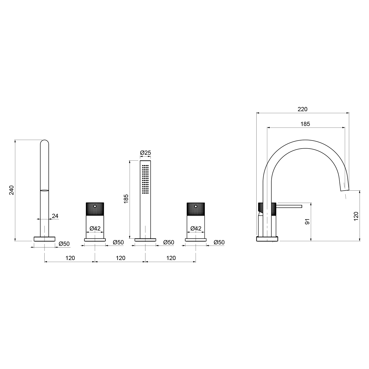 Sapho AQUALINE LOTTA kádperembe szerelhető kádtöltő csaptelep, króm LT984
