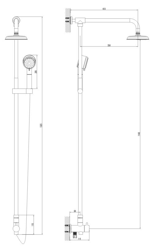 Sapho zuhanyoszlop (1202-01) csaptelepre szerelhető fej- és kézi zuhannyal Oszlop magasság 1000 mm Csatlakozás 1/2 " Fejzuhany méret 200 mm Anyaga: sárgaréz Felület: króm Kézi zuhany: ABS műanyag / króm.
